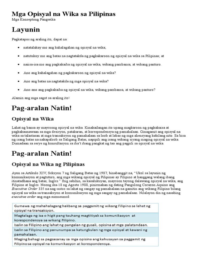 Mga Opisyal Na Wika Sa Pilipinas Pdf