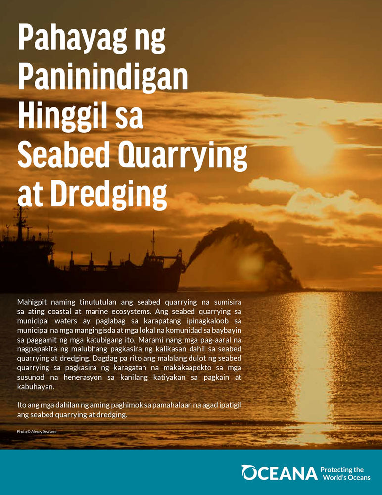 Pahayag Ng Paninindigan Hinggil Sa Seabed Quarrying At Dredging Oceana Filipino