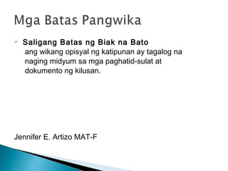 Batas Komonwelt bilang 184 1936 Lumikha ng isang lupon at itinakda ang mga kapangyarihan nito kabilang na rito ang pagpili ng isang katutubong wika na siyang. Mga Batas Pangwika. Itinadhana ang orihinal na Saligang Batas 1935 para sa isang Kongreso na may isang Kapulungan ng mga Kinatawan.