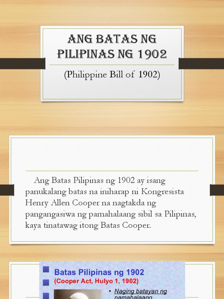 Ano ang batas pilipinas ng 1902 o batas cooper. 1 Get Another question on History. Ano ang mga nilalaman ng dream of the red chamber. Ang Batas Cooper o mas kilala sa tawag na Batas ng Pilipinas ng 1902 english.
